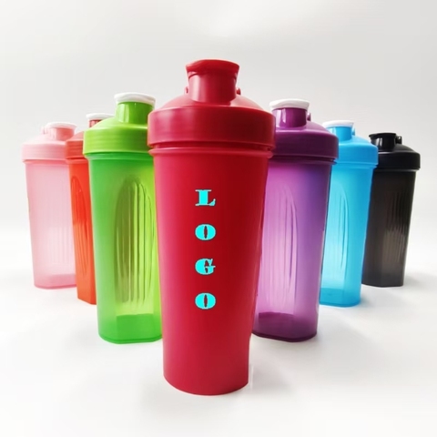 ขวดน้ำพลาสติกไร้สาร BPA ป้องกันการรั่วขวดน้ำสำหรับเล่นกีฬายิมขวดเขย่าโปรตีนฟิตเนส